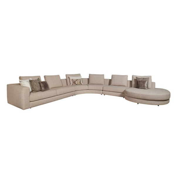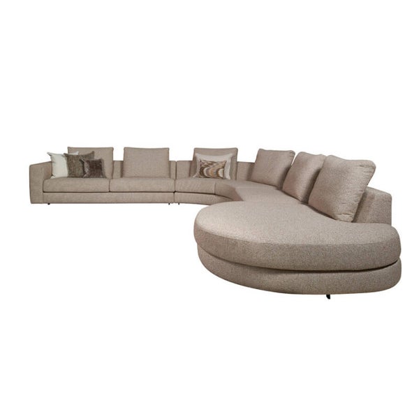 Modulebank met ronde vormen en een metalen poot. Ook mogelijk als model Thies, met lagere vullende rugkussens.