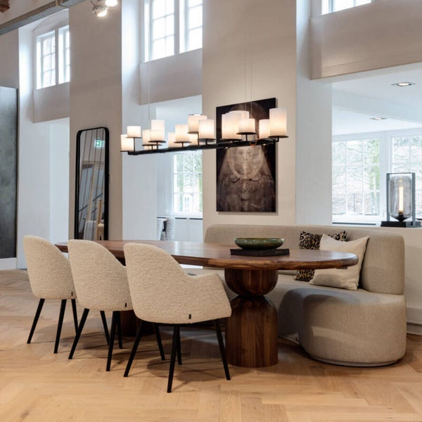 Ronde zitbank met een gestoffeerde plint. De licht gebogen bank heeft ronde vormen, een vaste zit en past aan een eetkamertafel. Door het design aan de achterzijde kun je de Eternity ook vrij in een ruimte plaatsen. Het model is ook leuk te combineren met een bijzettafel als zitje.
