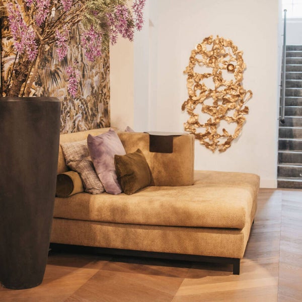 Strakke chaise longue met een gebombeerde zitting. Creëer een plek waar je samen kunt ontspannen door twee chaise longue bij elkaar te plaatsen of combineer het meubel met de Roger loveseat.