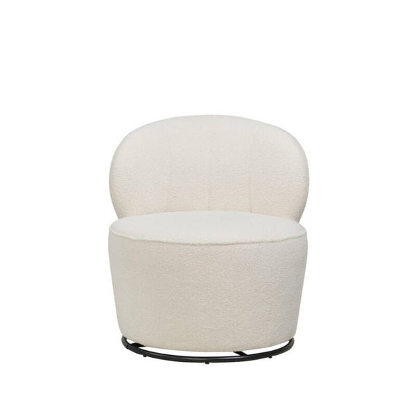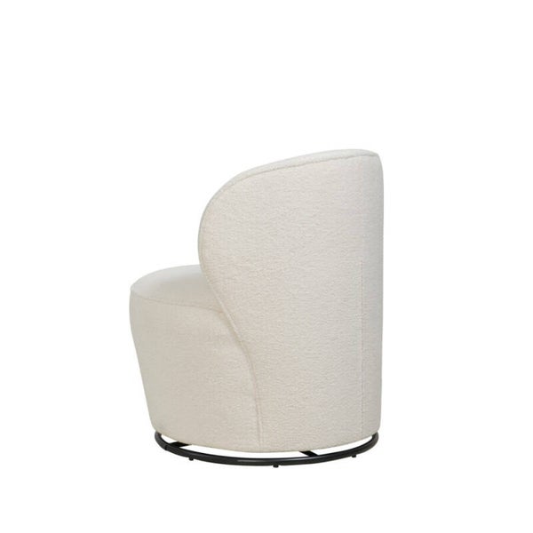 Fauteuil met een ronde vormen op een draaischijf. Het is een model zonder armen dat ook mogelijk is op een gestoffeerde plint. Fauteuil Pearl is mogelijk in oneindig veel stoffen.