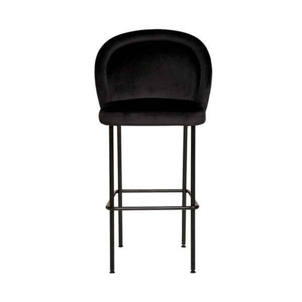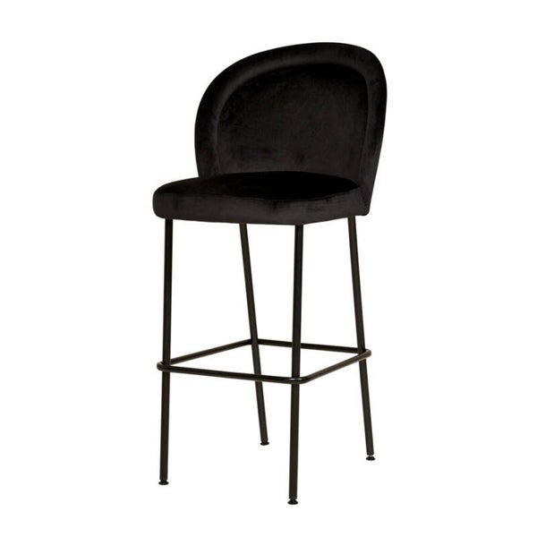 Moderne barkruk met metalen onderstel. De ronde rugleuning geeft het model een zachte uitstraling. De Isabel barkruk is mogelijk in iedere gewenste stof.