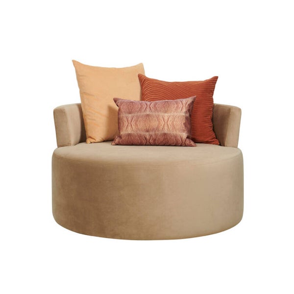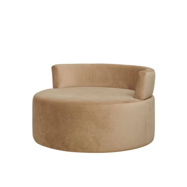 Rond daybed met een opstaande rug. Een prachtig meubel om in te ontspannen. De Pomme is ook verkrijgbaar als hocker.