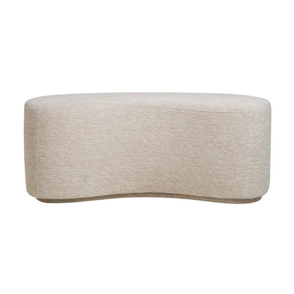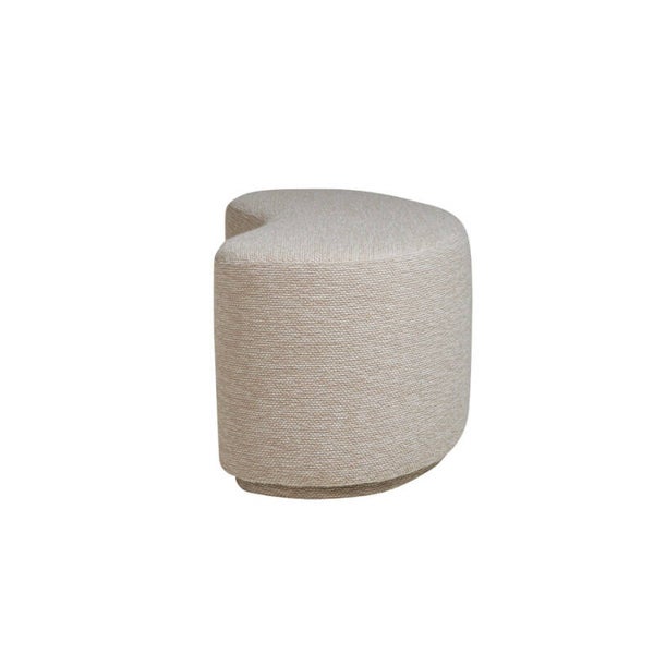 Gebogen hocker met gestoffeerde plint. Een hocker die perfect is voor aan een ronde tafel, maar ook aan het hoofd van een tafel. Mogelijk in vele stoffen en maten.