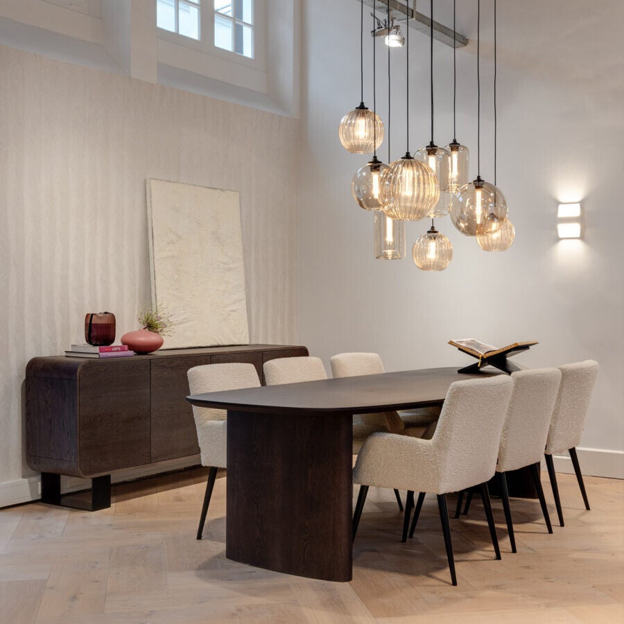 Stijlvolle eetkamertafel met een Deens ovaal blad en twee bolle elips poten. Combineer de Vario eetkamertafel met de andere meubelen uit de Vario collectie.