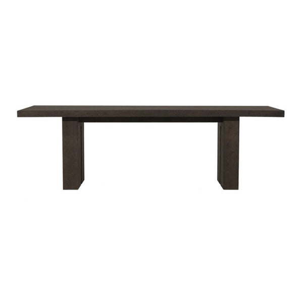 Langwerpige eetkamertafel met een enkele kolom. De poot geeft dit model een robuuste en strakke uitstraling. De Kolom eetkamertafel is ook mogelijk met een dubbele kolom.