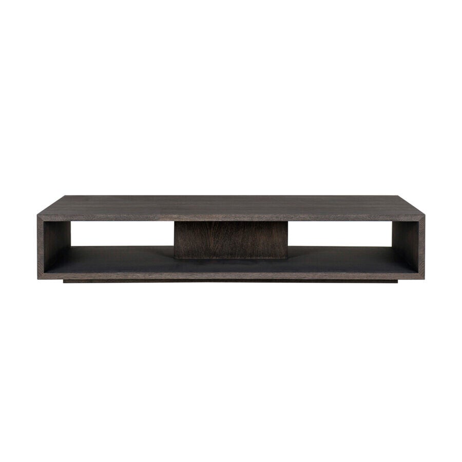 Langwerpige salontafel met open zijden. Het zwevende model heeft een ruimtelijke uitstraling dankzij het open vak. De Kubus salontafel is verkrijgbaar in diverse uitvoeringen.