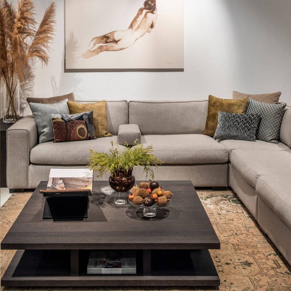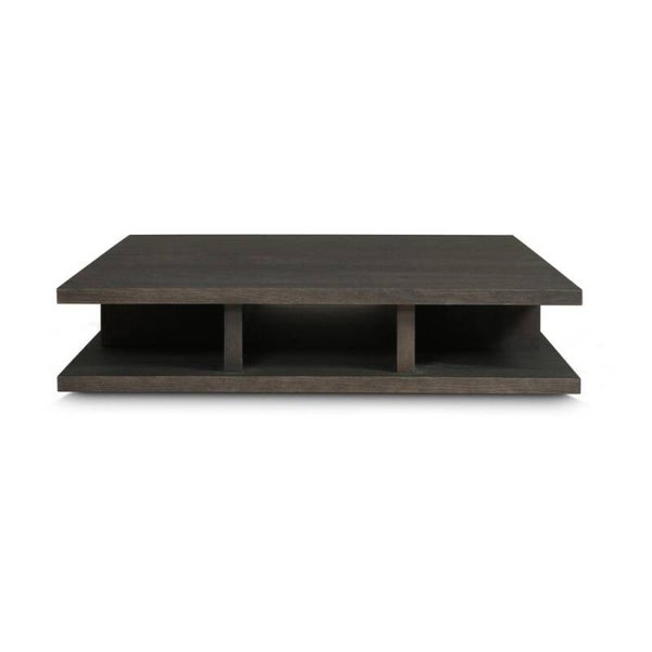 Vierkante salontafel met open vakken. Dit zwevende model heeft aan iedere zijde meerdere open vakken, die je kunt gebruiken voor magazines of afstandsbedieningen. De Unit salontafel is verkrijgbaar in diverse afmetingen.