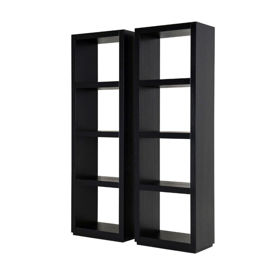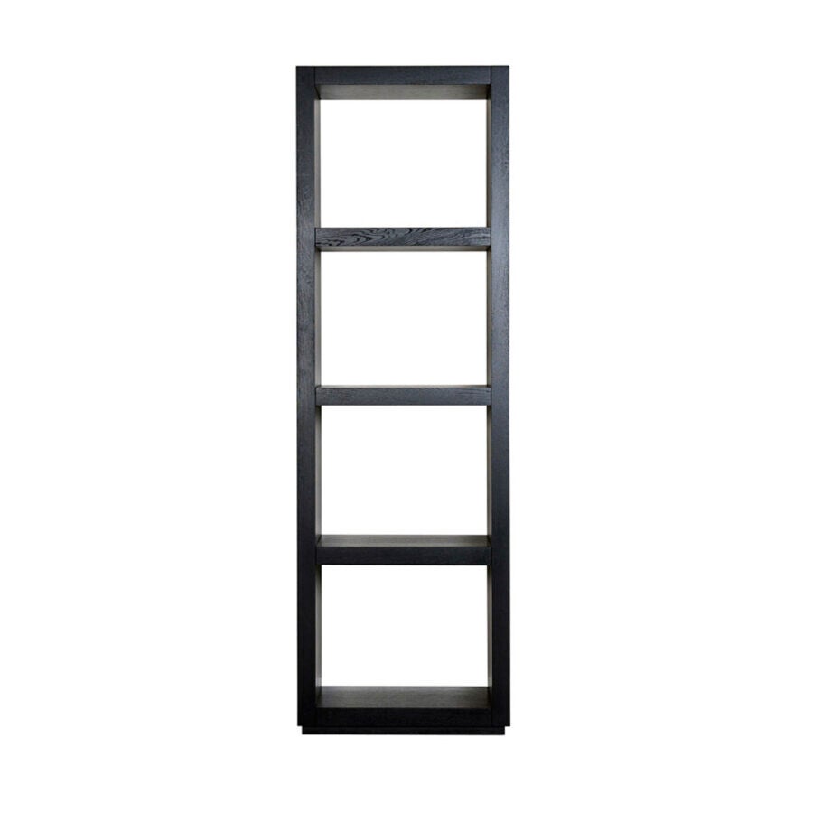 Smalle roomdivider met drie schappen. Creëer een afscheiding met dit model zonder achterwand, zonder afbreuk te doen aan de ruimtelijkheid.