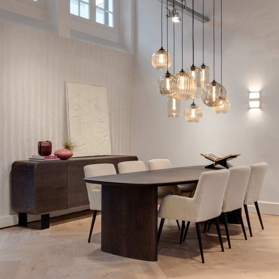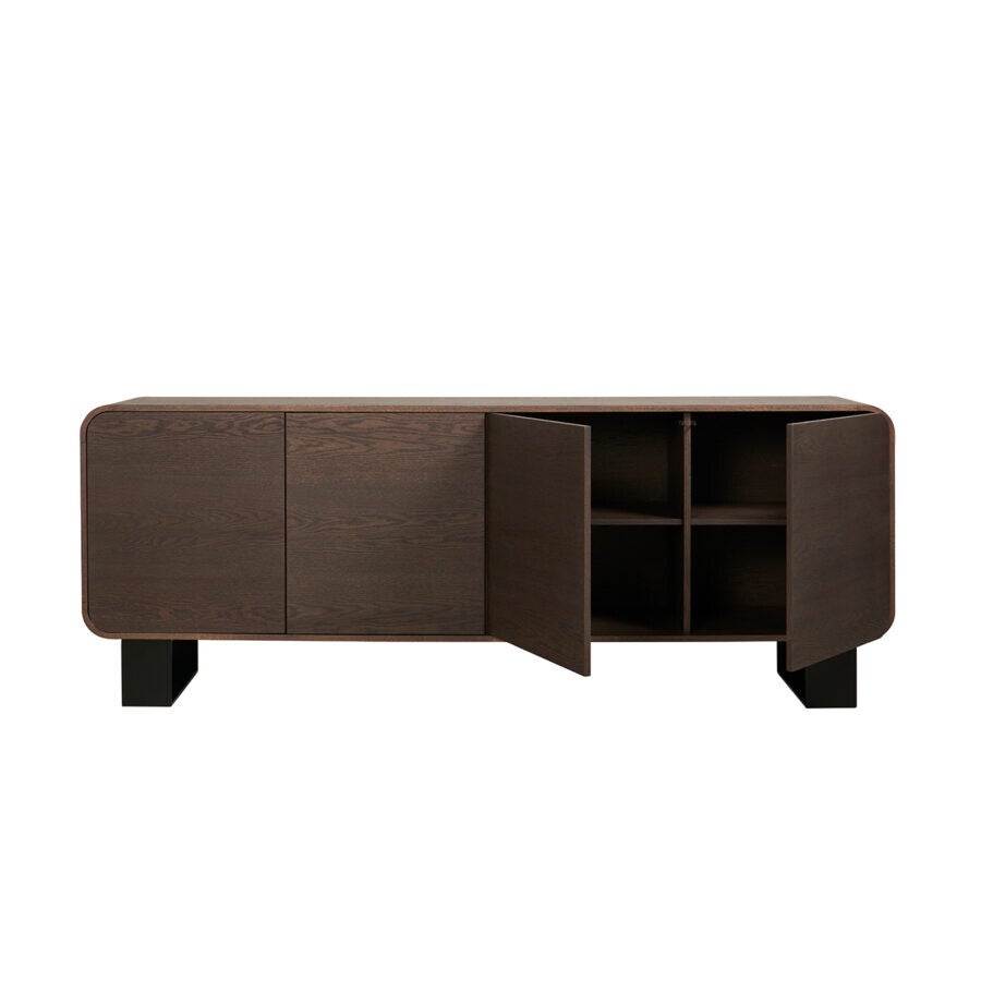Dressoir met ronde vormen. Het meubel staat op twee metalen u-poten en heeft vier deuren. Combineer het Vario dressoir met de andere meubelen uit de Vario collectie.