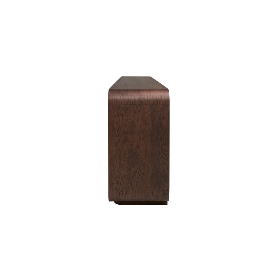 Dressoir met ronde vormen. Het meubel staat op een plint en heeft vier deuren. Combineer het Vario dressoir met de andere meubelen uit de Vario collectie.