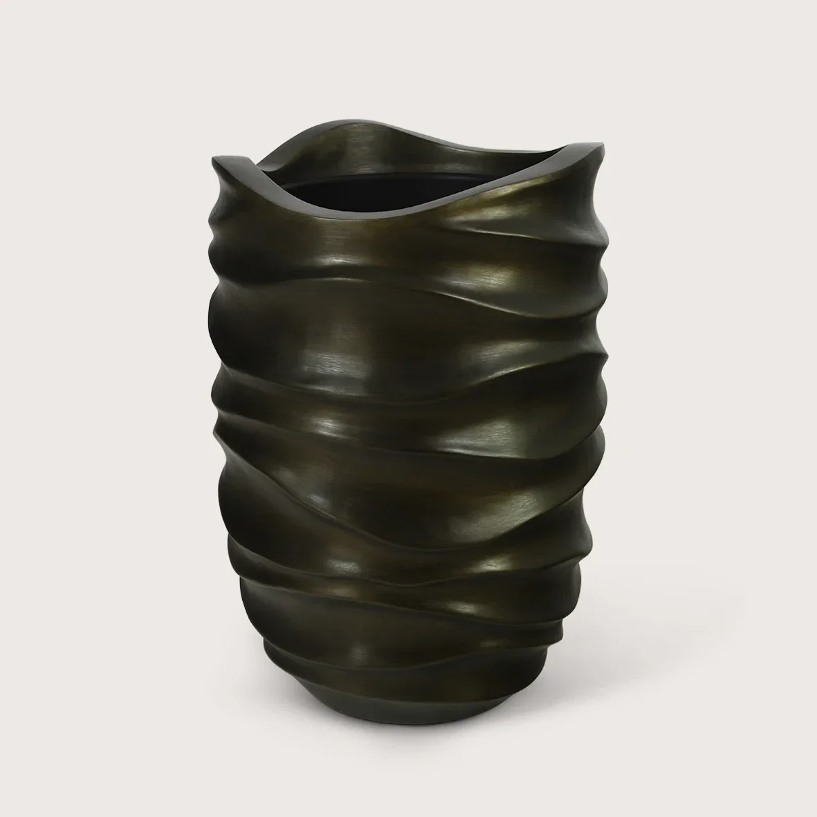 Kleur: Brons Materiaal: PolyresinAfmetingen: Ø 60 cm, hoogte 88 cm Binnenafmetingen: Ø 41, hoogte 37 cmVoetafmetingen: Ø 35 cm