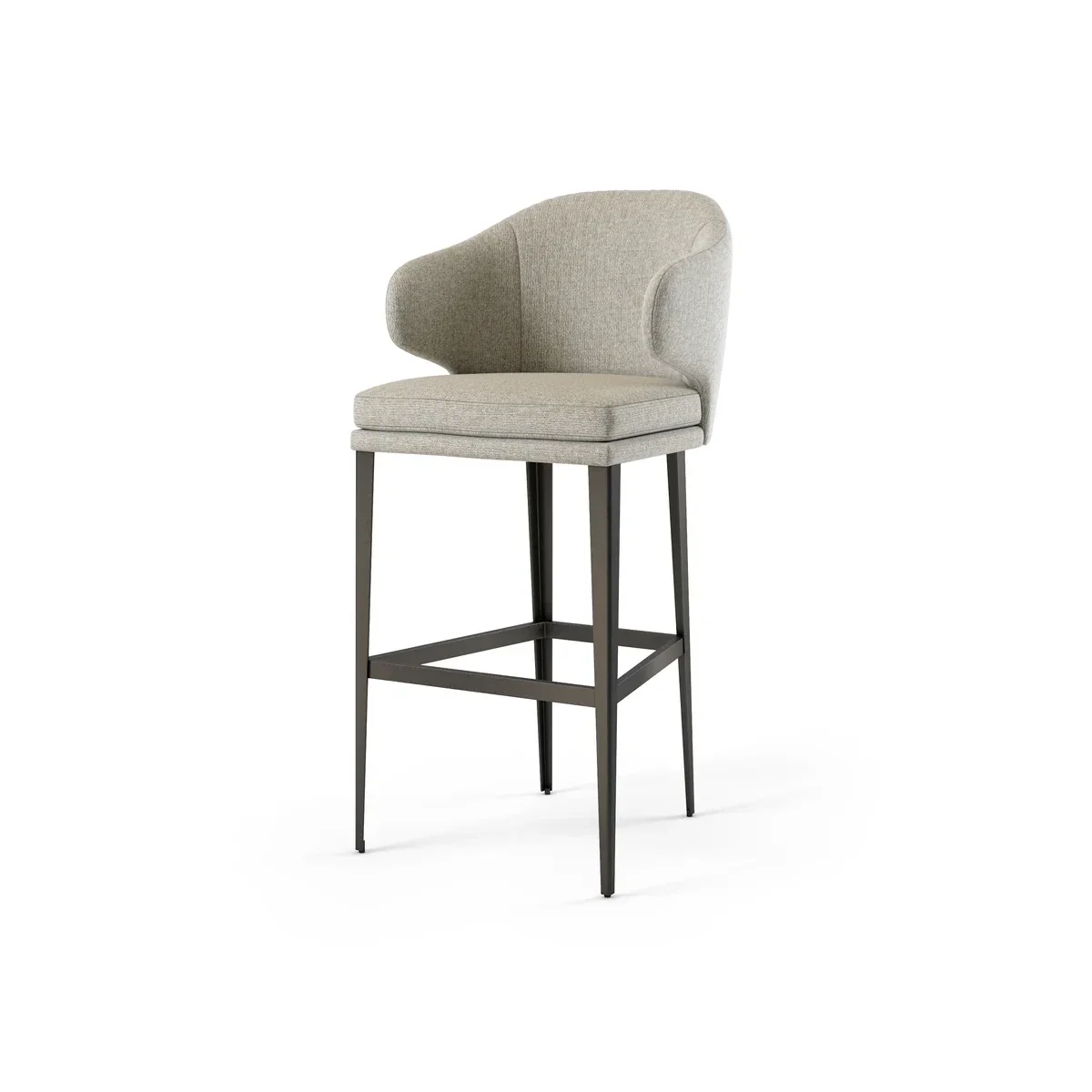 De Jamy barstoel heeft mooie, ingetogen vormen. Het stevige kussen in de rug van de fauteuil geeft de stoel extra comfort om urenlang te tafelen. Een uniek ontwerp, prachtige materialisering van stof of leer in combinatie met een metalen onderstel in pearl bronze zorgt voor eenheid. Zeer toegankelijk in elk interieur. Chic, tijdloos en altijd functioneel.