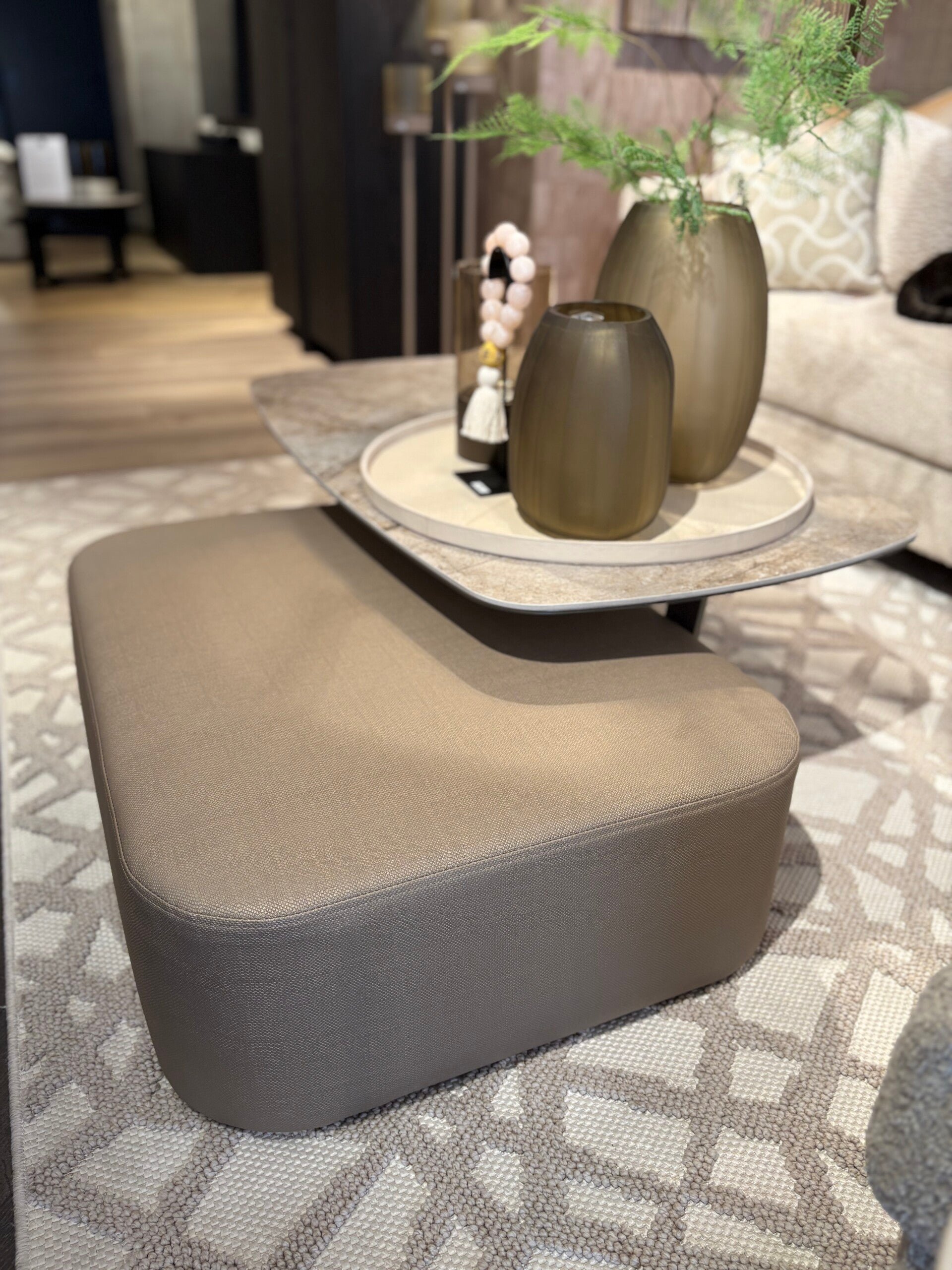 Details: Frame verkrijgbaar in verschillende kleuren poedercoat, poef verkrijgbaar in verschillende stoffen.