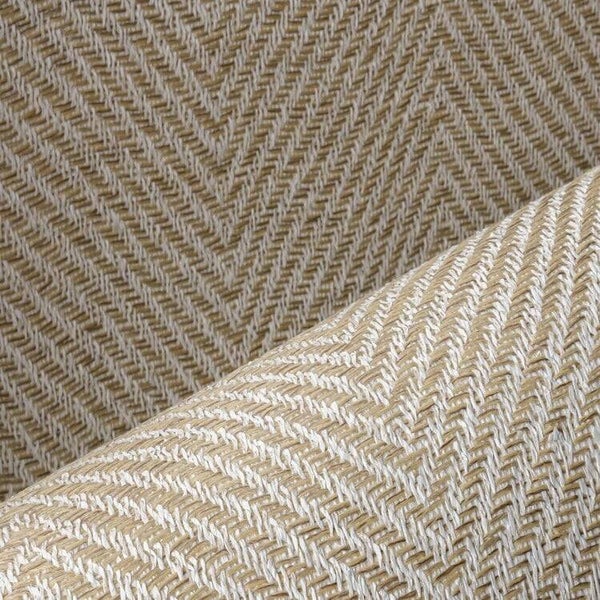 Het elegante chevronpatroon van Atuona combineert de natuurlijke charme van papier en jute in een verfijnde weving met een bohemien tintje. Dit dessin is vernoemd naar het historische dorp Atuona, waar de beroemde schilder Paul Gauguin en zanger Jacques Brel hun laatste rustplaats vonden. Beide kunstenaars werden tijdens een reis verliefd op de eilanden en gingen er nooit meer weg.