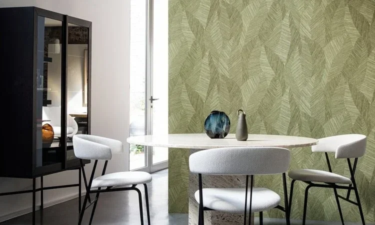 De collectie Tangram haalt haar naam en inspiratie uit het gelijknamige puzzelspel. Elk dessin lijkt immers een ingenieuze puzzel. Aan de basis liggen natuurlijke grassen, grof of net heel fijn geweven en met de hand ingelegd tot verschillende patronen. Vervolgens werd van ieder dessin een interpretatie gemaakt met watergedragen inkten gedrukt op vlies. Deze kwalitatieve inkten bevatten uitzonderlijk veel pigment. Ze geven het behang niet alleen diepte en reliëf, maar resulteren ook in opvallend heldere, frisse kleuren en maken het behang extra sterk.