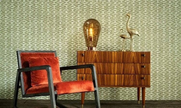 Tijdloos behang met een vintage toets en een glamoureuze twist, geïnspireerd op natuurlijke materialen.