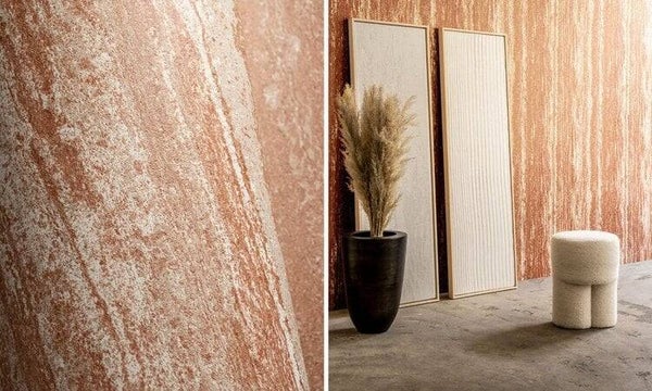 Lustro heeft een look van travertijn of marmer. De verschillende steenlagen zijn duidelijk zichtbaar en de onregelmatige poriën zijn typerend voor dit materiaal. De glinstering van mineralen, de gelaagdheid van steen en de oneffenheden verzoenen luxe, ruwheid en puurheid.