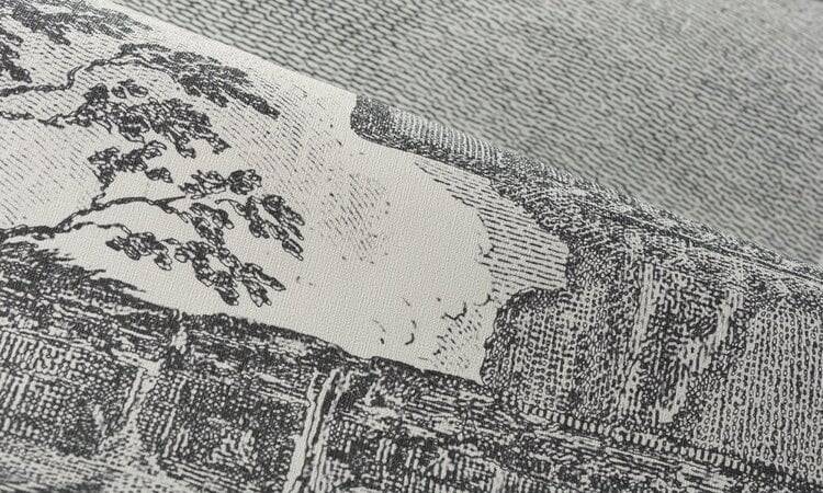 Rovine is een statig panorama in vinyl dat een ets nabootst van een Griekse ruïne. De tekening toont de oudheid in verval. Het werk kent z’n origine bij Monsieur Descamps, een schilder van de koning.