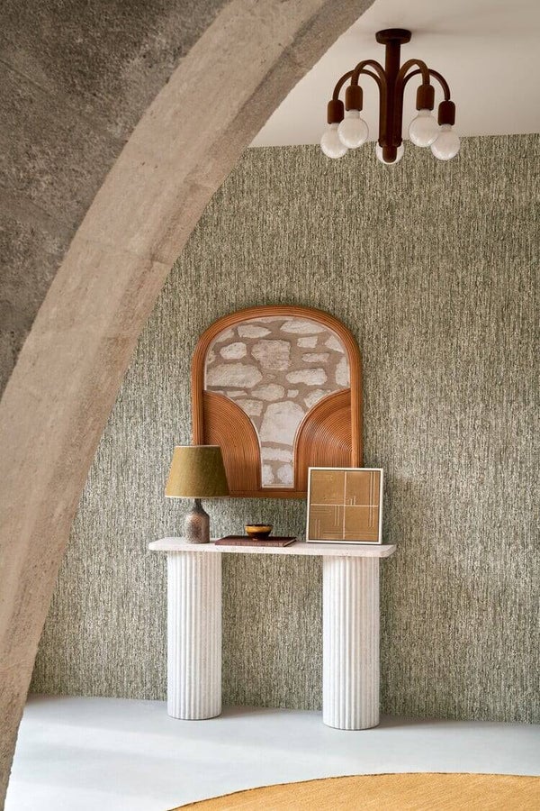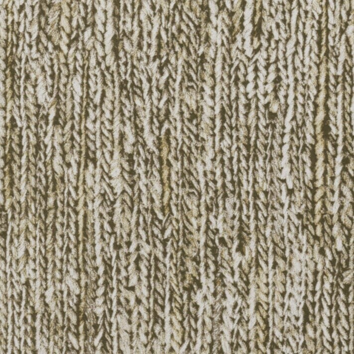 Het dessin Tresse brengt een speelse noot in de collectie met een print van nonchalante vlechten uit natuurlijke vezels. Sommige zijn heel fijn gevlochten, andere wat dikker. Een dun laagje velours zorgt voor een zachte afwerking en accentueert de natuurlijke print.