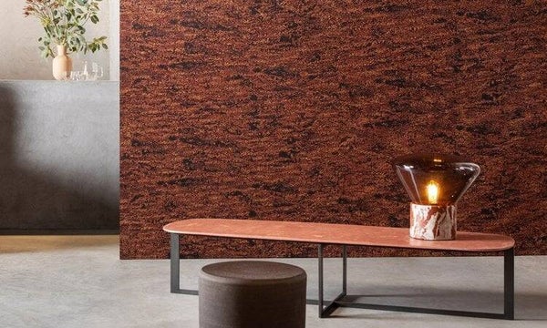 Deze textielmuurbekleding heeft enerzijds een verweerde maar tegelijkertijd warme look dankzij de luxueuze bouclé stof. De horizontaal geweven multicolour draden geven diepte en reliëf aan het patroon. De zichtbare metaaldraad zorgt voor een subtiele glans.