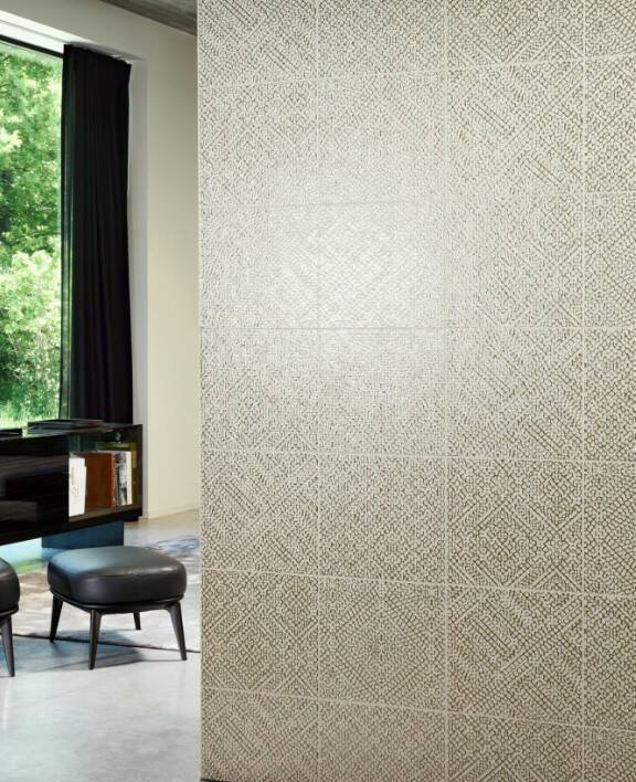 Met Matrix aan de muur waan je je in oosterse sferen. Met dit dessin heb je op een eenvoudige manier de look van wandtegels aan de muur. In combinatie met de glanzende reliëfinkt krijgt dit patroon een zeer realistische tegelstructuur.