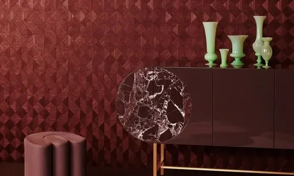 Het natuurproduct sisal, een stevige vezel afkomstig van de agaveplant, ligt aan de basis van de collectie Marqueterie. De natuurlijk geweven stukjes sisal worden versneden en met de hand in verschillende patronen gelegd. Het ambachtelijke inlegwerk schuift opvallende geometrische figuren naar voren. Zowel de verschillende richtingen van het weefsel als de kleuren zorgen voor veel diepte en textuur in deze 100% handgemaakte muurbekleding. Naargelang de lichtinval en het standpunt komt er een subtiele glans tevoorschijn.