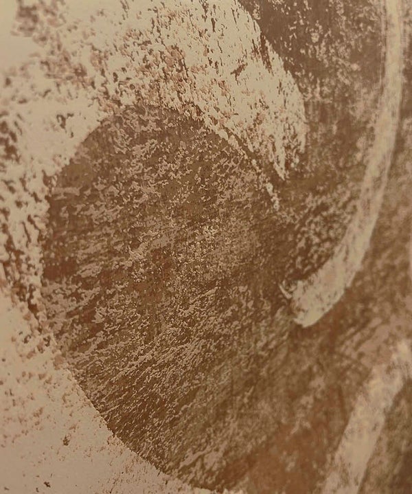 Sirocco heeft artistieke, vloeiende penseelstrepen, gecombineerd met een getextureerd oppervlak, die de sterke winden over de zandduinen van de Sahara voorstellen.