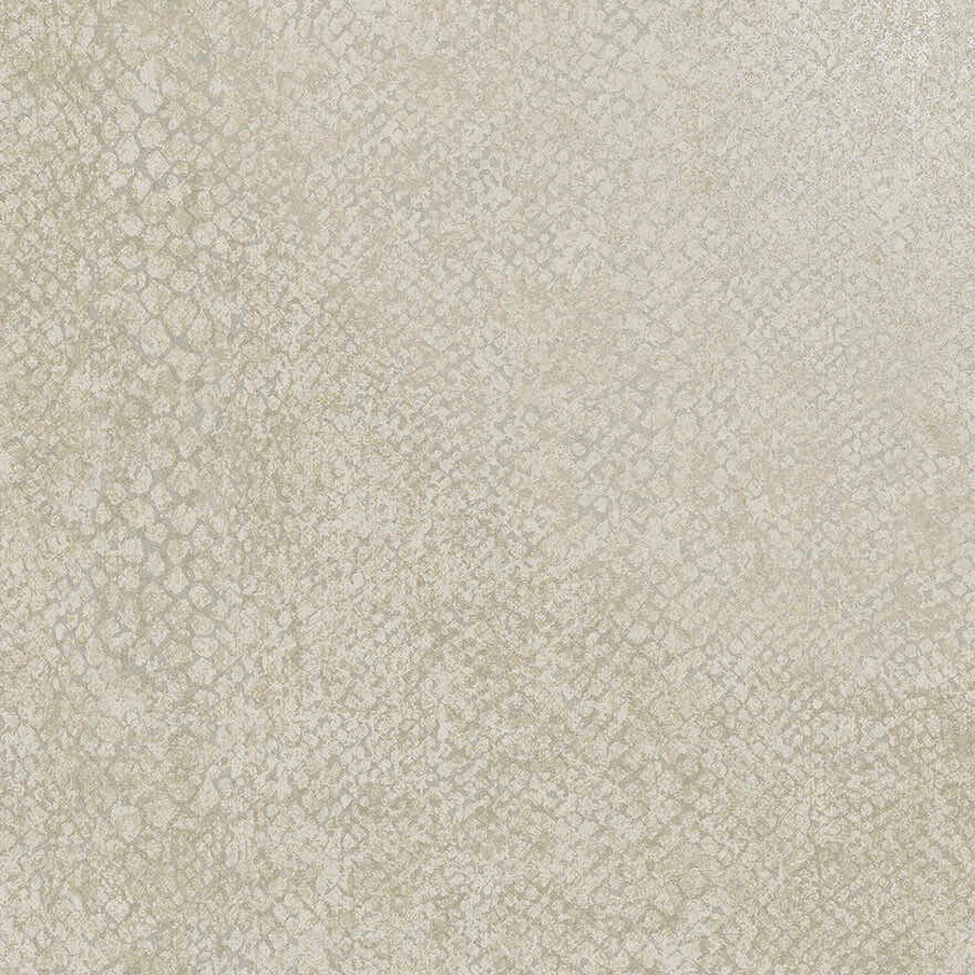 Een slangenhuid-textuur behang met subtiele metalen accenten en glazen kralenschubben zorgt voor een exotische, luxueuze uitstraling. Het onregelmatige, organische patroon voegt tastbare diepte toe, terwijl de licht verhoogde schubben licht en schaduw vangen voor een dynamisch, driedimensionaal effect.