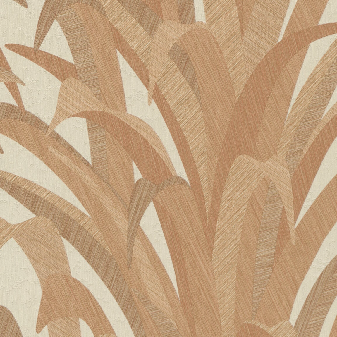 Het subtiele en lichte kleurenschema van dit behangontwerp wordt versterkt door de grote bladeren die een gevoel van natuurlijke schoonheid en levendigheid toevoegen.