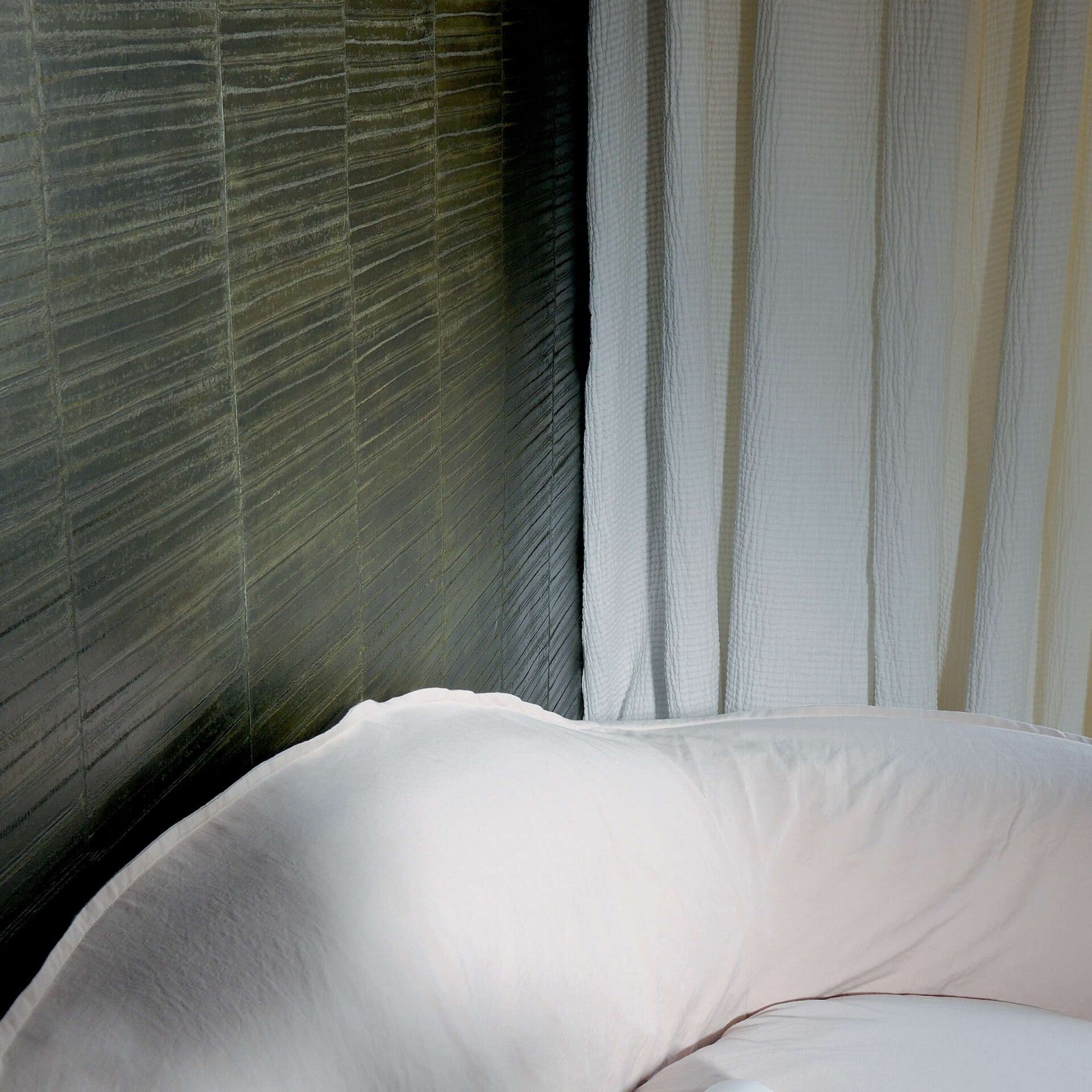 Het vinyl behang Elitis Anguille heeft een luxe structuur van subtiel aan elkaar gestikte palinghuid. Het behang is verkrijgbaar in 14 rijke kleuren.