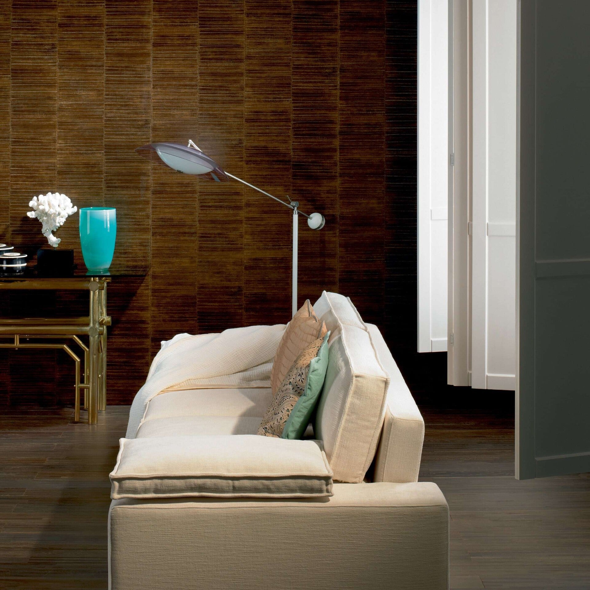Het vinyl behang Elitis Anguille heeft een luxe structuur van subtiel aan elkaar gestikte palinghuid. Het behang is verkrijgbaar in 14 rijke kleuren.