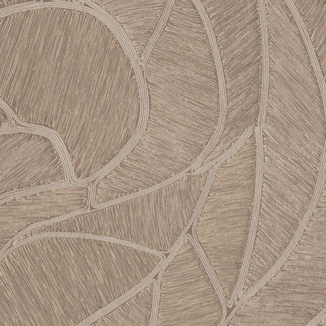 Behang met florale tekeningen in combinatie met organische vormen. Handmatig plaatst men minutieus touw van verschillende materialen en diktes in patronen waardoor een minimalistische tekening met bijhorend reliëf ontstaat.