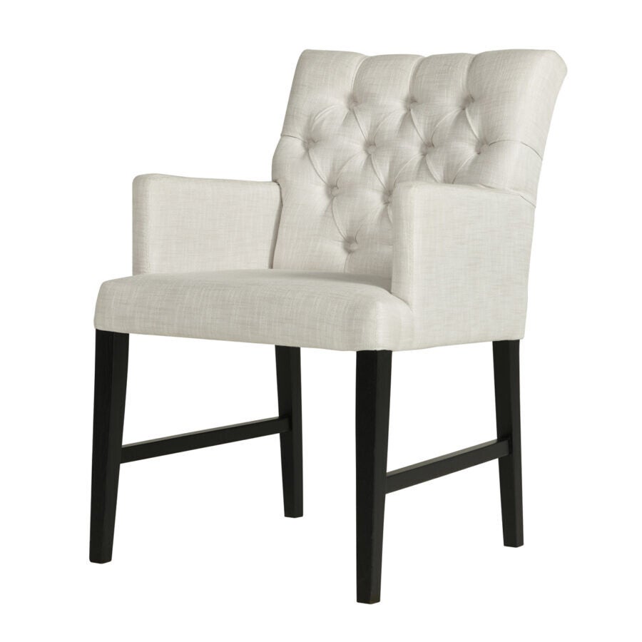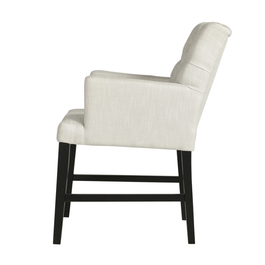 Eetkamerfauteuil met arm. De gecapitonneerde rug geeft dit strakke model een klassieke uitstraling. De Cosmo eetkamerfauteuil is verkrijgbaar in verschillende uitvoeringen.