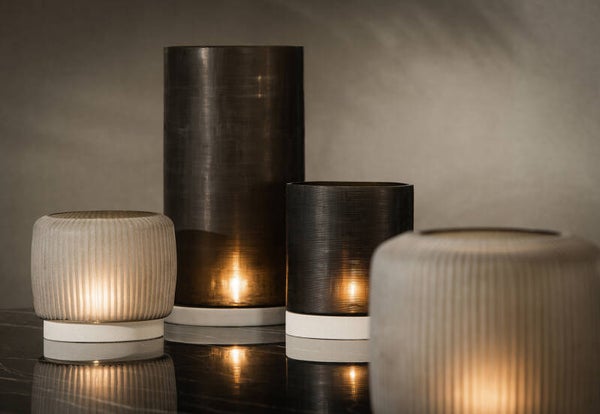 Materiaal: glas & steenMaten: S D 19,5 CM x H 22 CM M D 28 CM x H 24 CM